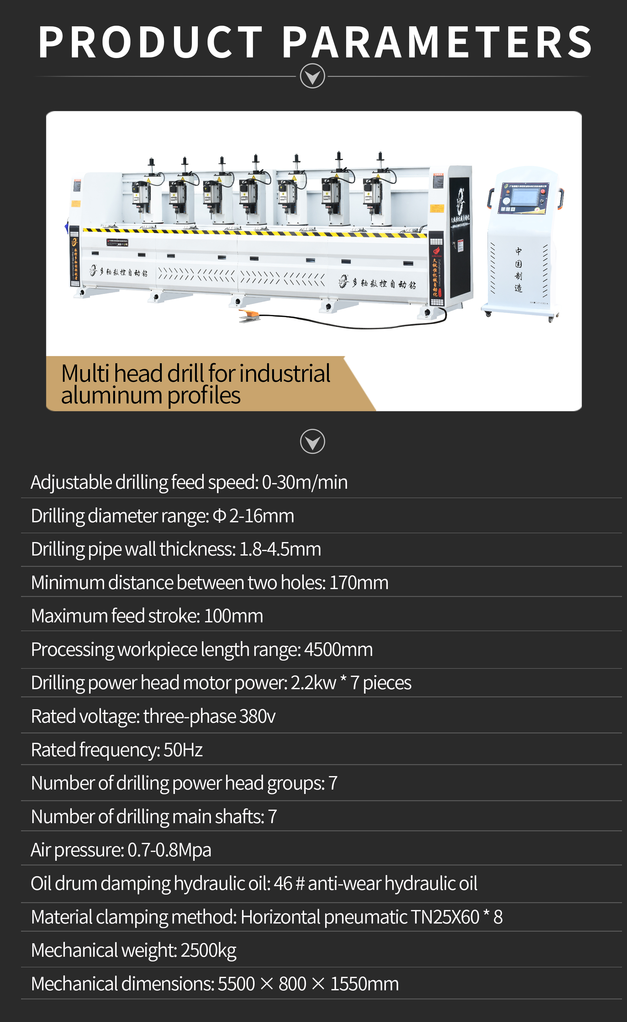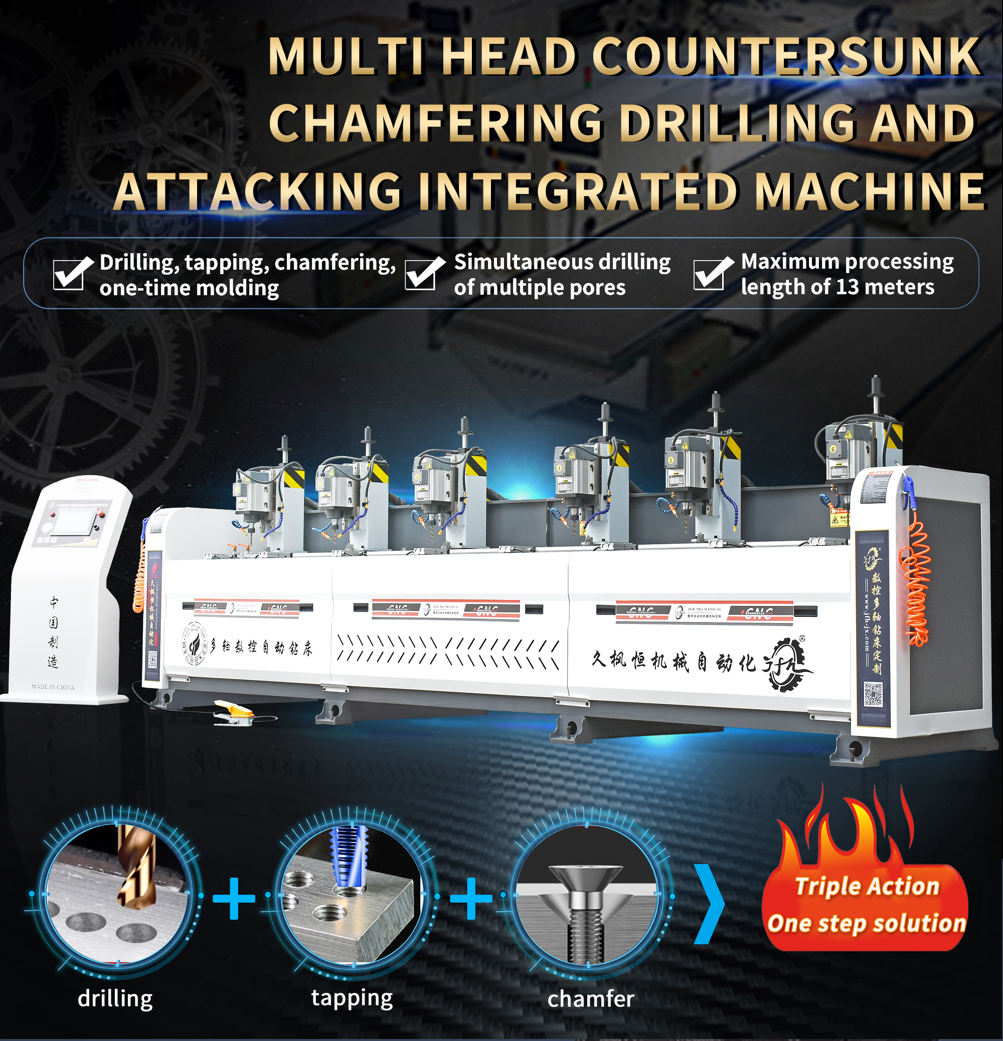 Display rack industrial aluminum profile decorative material plastic door frame aluminum alloy CNC multi head automatic drilling and chamfering machine